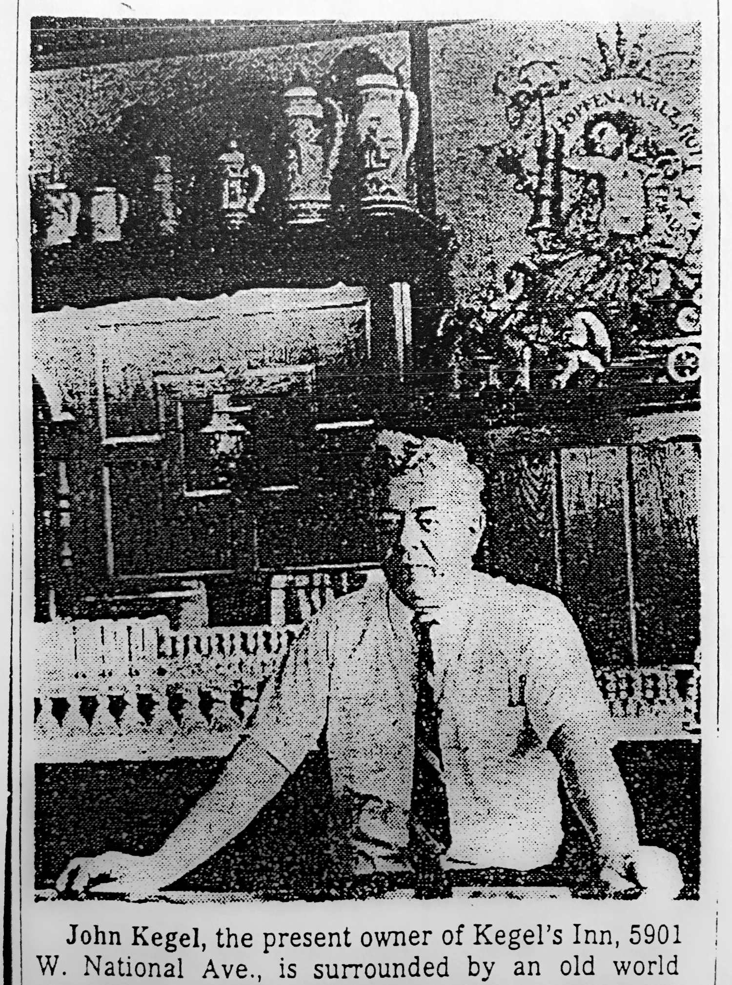 Born in Austria in 1892, John T. Kegel immigrated to the United States in 1911. Four years later, he married Slovenian-born Anna Bevc and in 1918 they moved to West Allis Wisconsin. After working variously as a trimmer and a milkman, John was convinced by a long-time friend to open a soft drink parlor. In reality, Kegel's Place was a prohibition-era speakeasy serving customers home-brewed beer and whiskey. In 1925, Kegel's Place occupied just the east half of the current building. Like many other area "soft drink parlors" during prohibition, John Kegel brewed beer in the basement and his wife Ruth would carry flasks of whiskey that were hidden in her sewn-in pockets. For a time, things went smoothly, as most of the neighborhood was German. With the help of the leaded stained glass windows, it was hard to see what was actually going on inside.